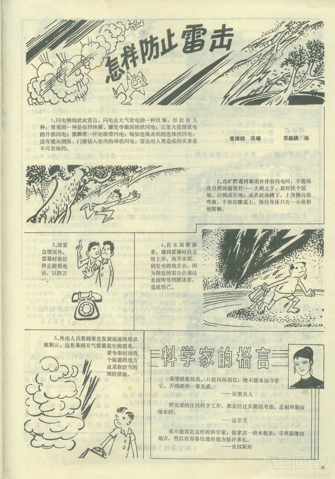 连环画 《怎样防止雷击》 改编:黄章辉 绘画:苏森桃 科普画刊 1980年第3期 海阔中文网画报藏书扫描制作 转载请注明出处 目录 |<< < 上一页 下一页 > >>| 怎样防止雷击 < 上一页下一页 >