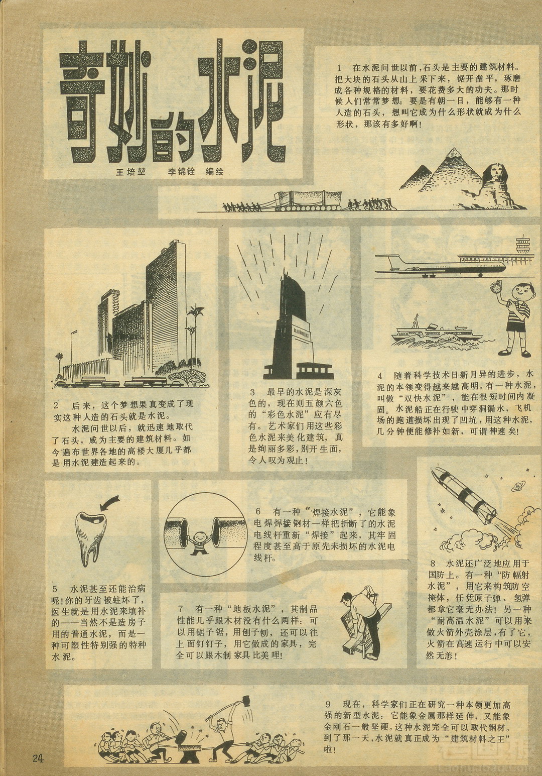 连环画 《奇妙的水泥》 改编:王培堃 绘画:李锦铨 科普画刊 1981年第6期 海阔中文网画报藏书扫描制作 转载请注明出处 目录 |<< < 上一页 下一页 > >>| 奇妙的水泥 < 上一页下一页 >