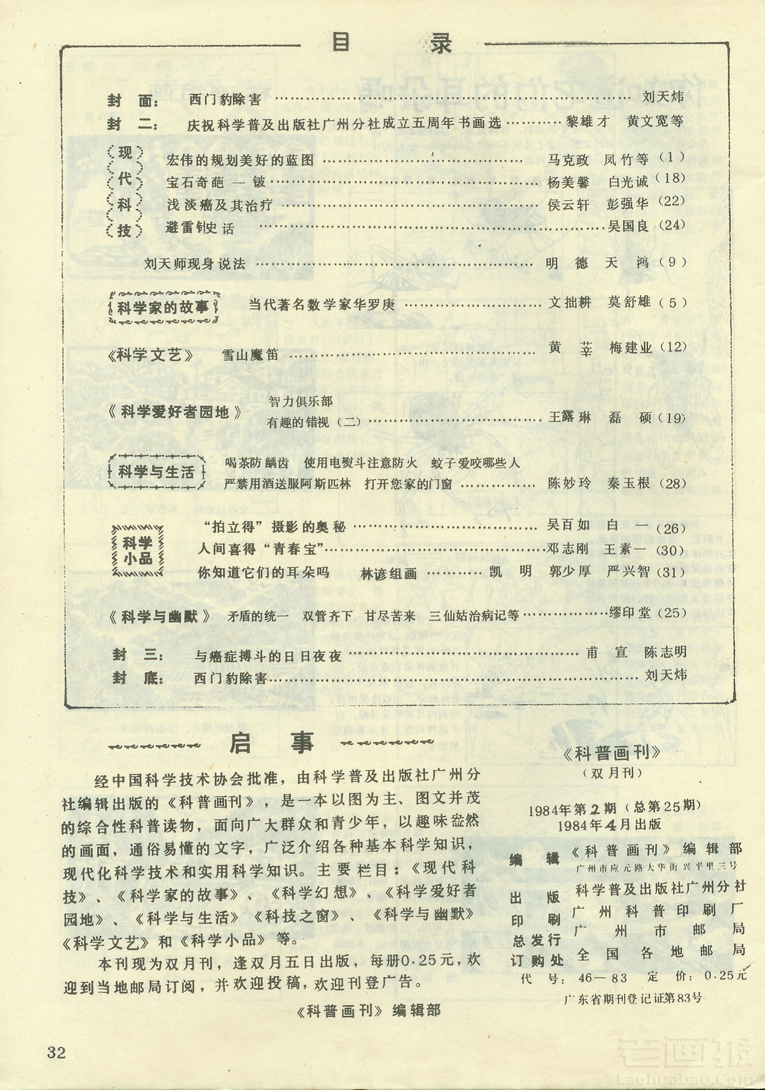 《科普画刊》1984年2期目录 科普画刊 1984年第2期 海阔中文网画报藏书扫描制作 转载请注明出处 目录 |<< < 上一页 下一页 > >>| 《科普画刊》1984年2期目录 < 上一页下一页 >