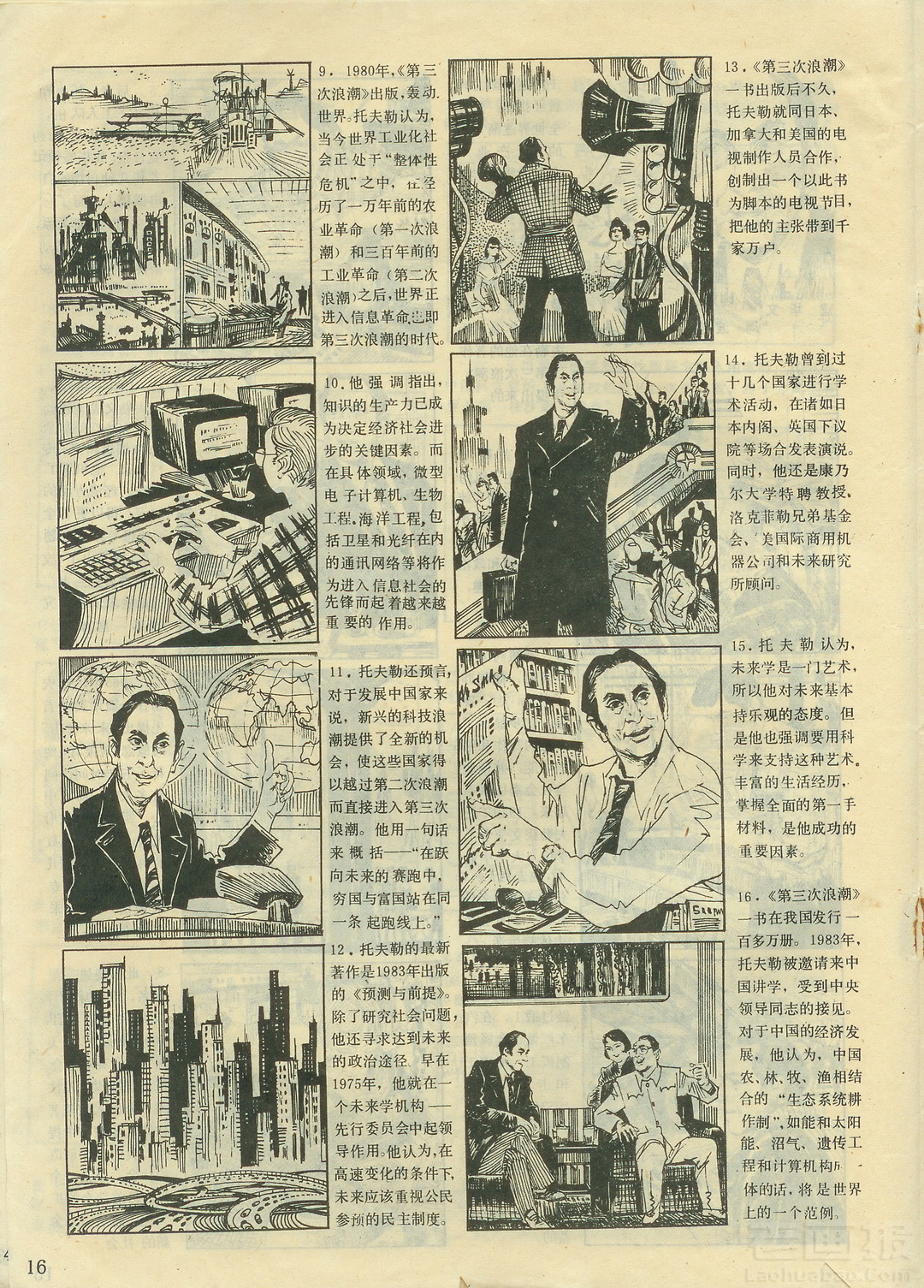 连环画 《未来学家托夫勒》 第2页 编文:建华 绘画:周波 科普画刊 1985年第1期 海阔中文网画报藏书扫描制作 转载请注明出处 1 2 目录 |<< < 上一页 下一页 > >>| 未来学家托夫勒 < 上一页下一页 >