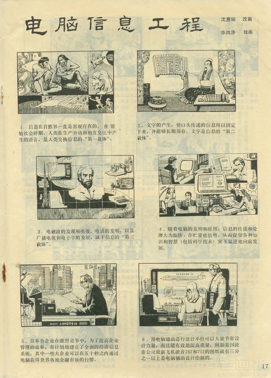 连环画 《电脑信息工程》 编文:沈惠娟 绘画:华均浩 科普画刊 1985年第1期 海阔中文网画报藏书扫描制作 转载请注明出处 1 2 目录 |<< < 上一页 下一页 > >>| 电脑信息工程 < 上一页下一页 >