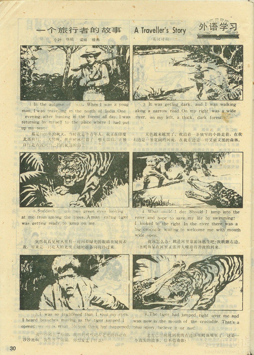 连环画 《一个旅行者的故事》 双语连环画 编文:小叶 绘画:梁祥 科普画刊 1985年第1期 海阔中文网画报藏书扫描制作 转载请注明出处 目录 |<< < 上一页 下一页 > >>| 一个旅行者的故事 双语连环画 < 上一页下一页 >