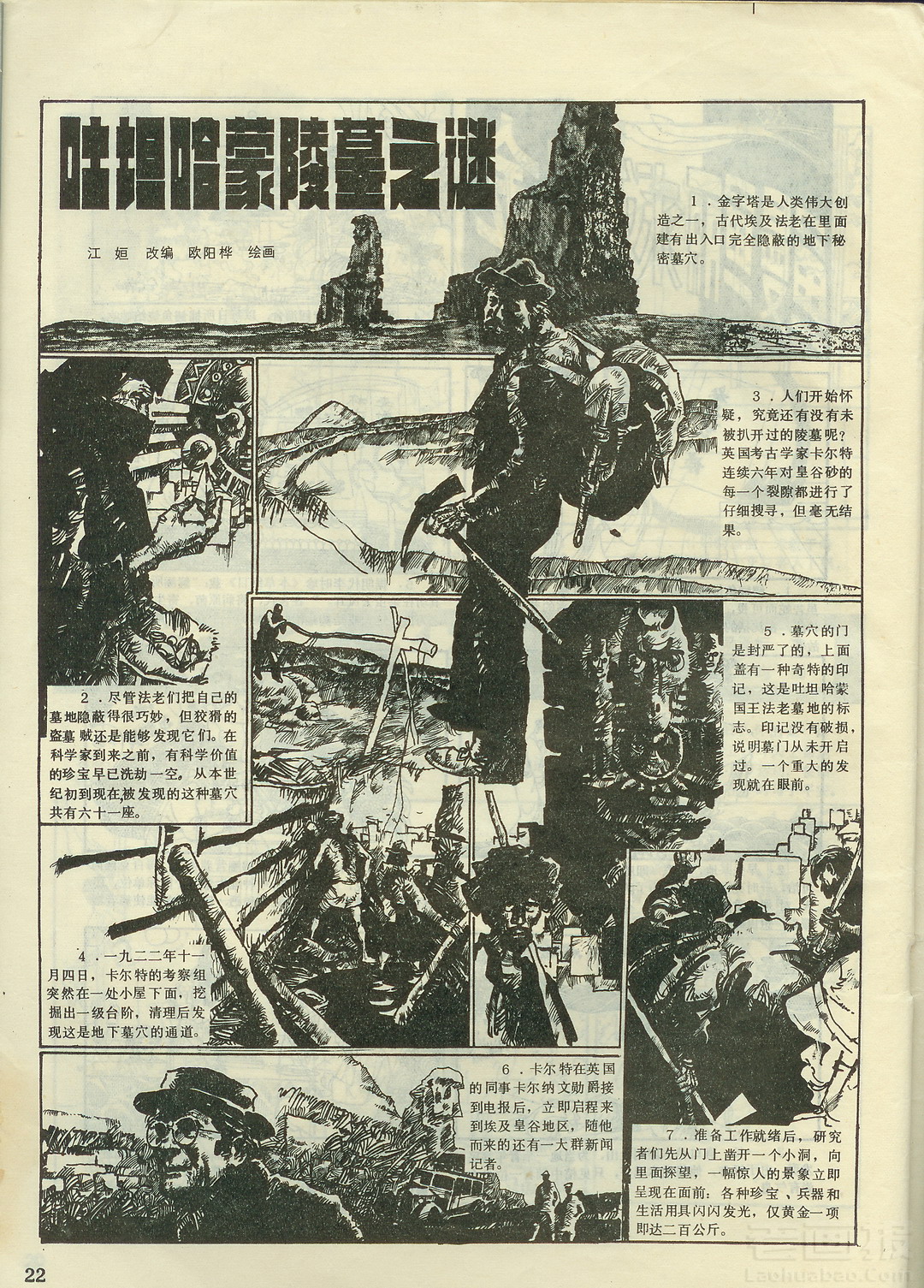 连环画 《吐坦哈蒙陵墓之谜》 编文:江姮 绘画:欧阳桦 科普画刊 1985年第3期 海阔中文网画报藏书扫描制作 转载请注明出处 1 2 目录 |<< < 上一页 下一页 > >>| 吐坦哈蒙陵墓之谜 < 上一页下一页 >