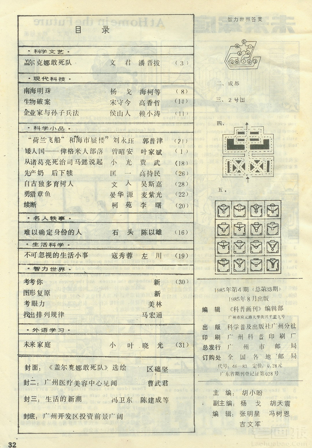 《科普画刊》1985年4期目录 科普画刊 1985年第4期 海阔中文网画报藏书扫描制作 转载请注明出处 目录 |<< < 上一页 下一页 > >>| 《科普画刊》1985年4期目录 < 上一页下一页 >