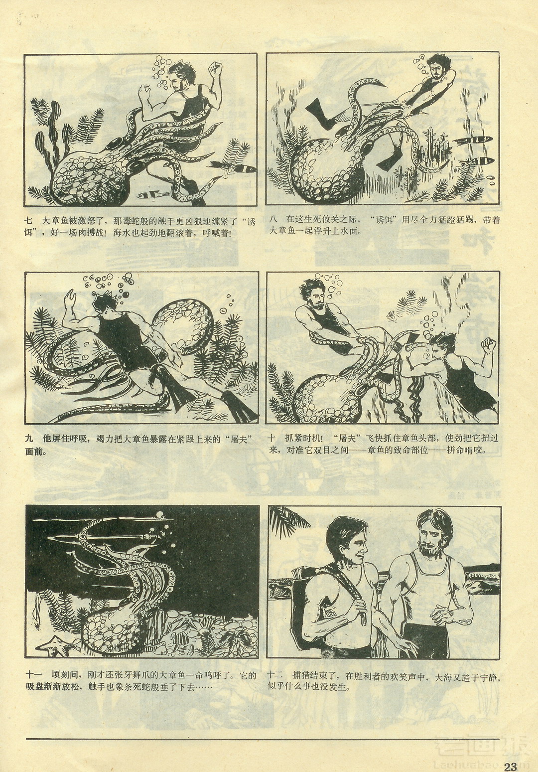连环画 《勇猎章鱼》 第2页 编文:晏华源 绘画:麦紫光 科普画刊 1985年第4期 海阔中文网画报藏书扫描制作 转载请注明出处 1 2 目录 |<< < 上一页 下一页 > >>| 勇猎章鱼 < 上一页下一页 >