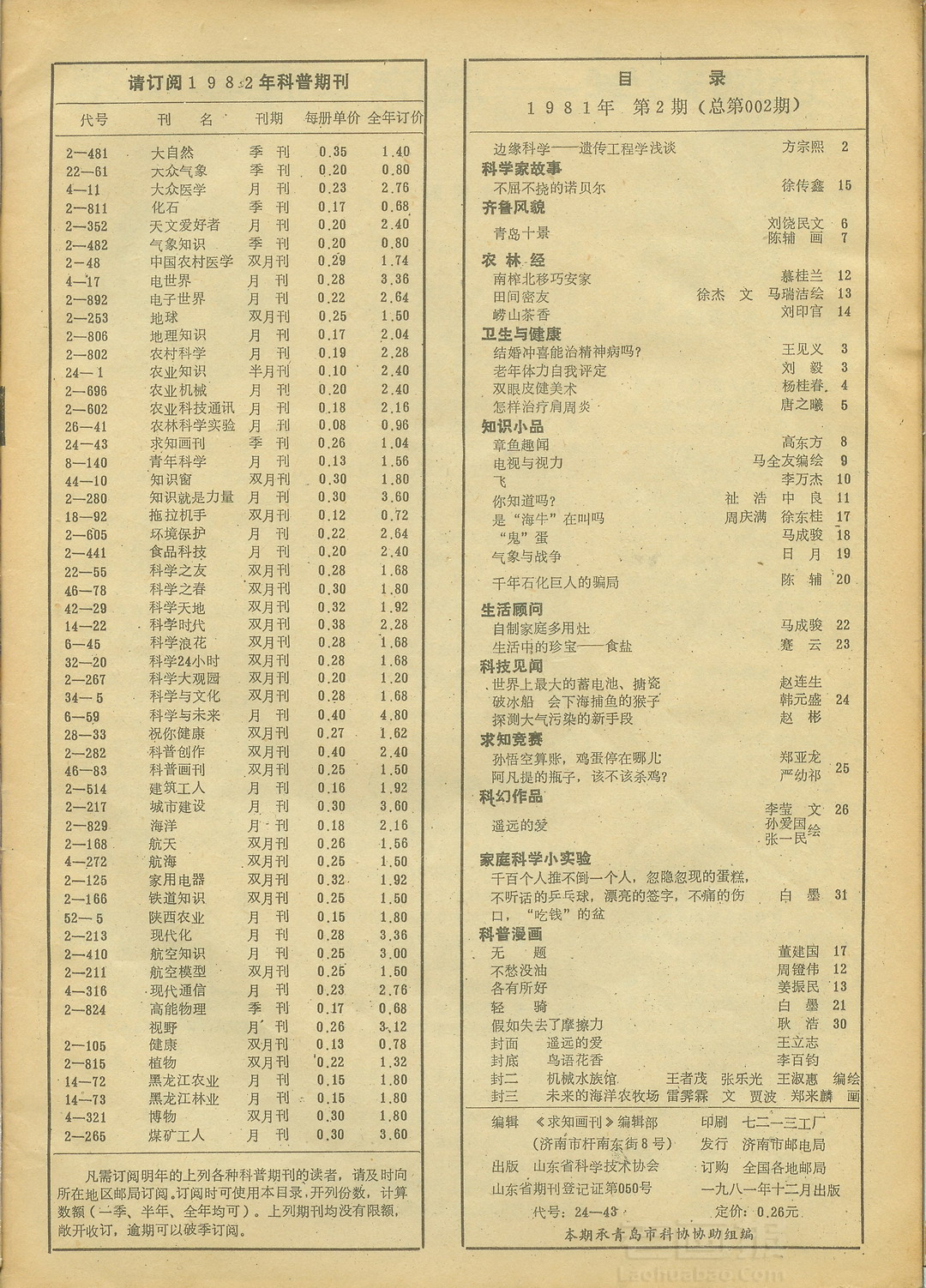 《求知画刊》1981年2期目录 求知画刊 1981年第2期 海阔中文网画报藏书扫描制作 转载请注明出处 目录 |<< < 上一页 下一页 > >>| 《求知画刊》1981年2期目录 < 上一页下一页 >