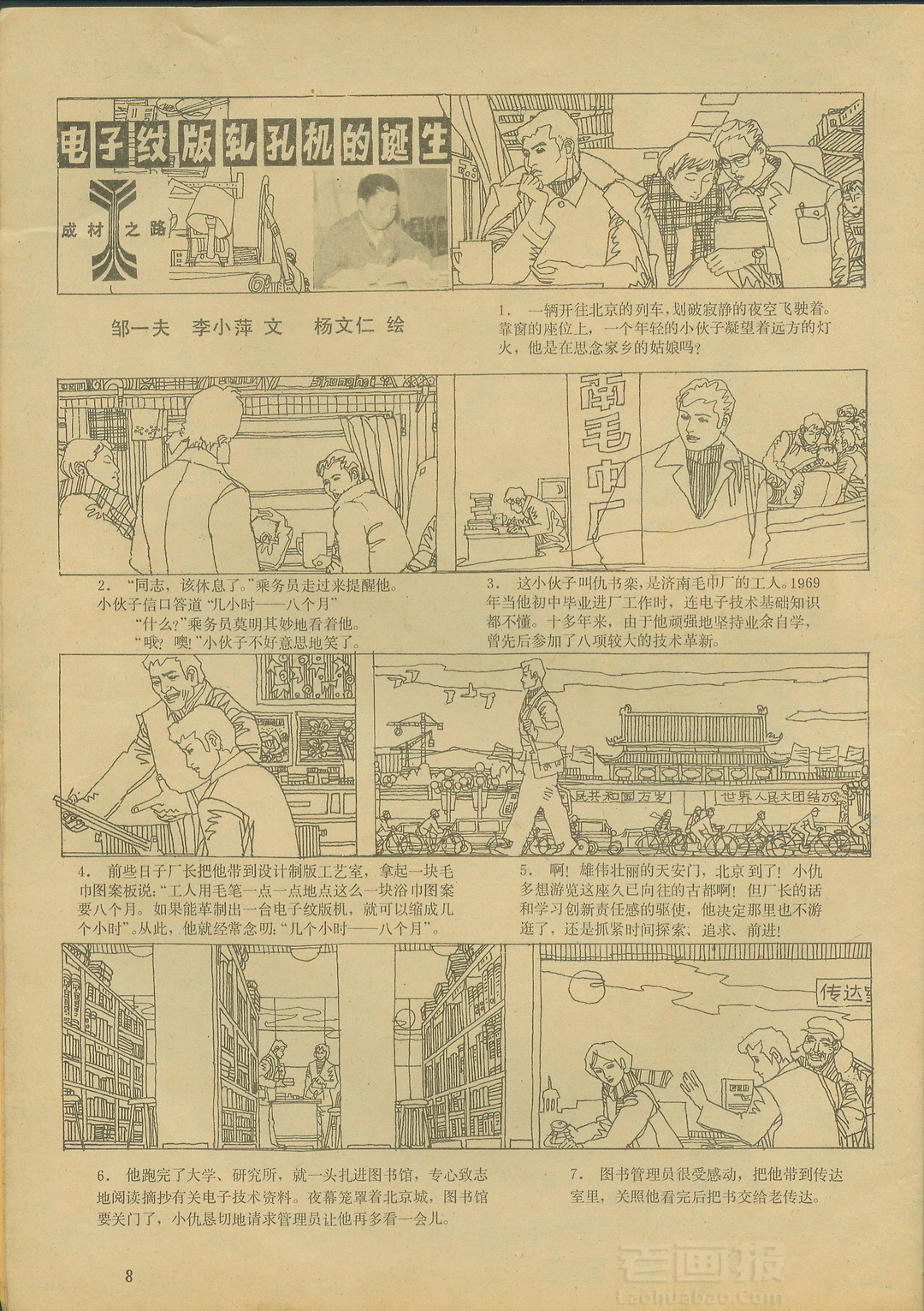 连环画 《电子纹版轧孔机的诞生》 改编:邹一夫,李小萍 绘画:杨文仁 求知画刊 1982年第4期 海阔中文网画报藏书扫描制作 转载请注明出处 1 2 目录 |<< < 上一页 下一页 > >>| 电子纹版轧孔机的诞生 < 上一页下一页 >