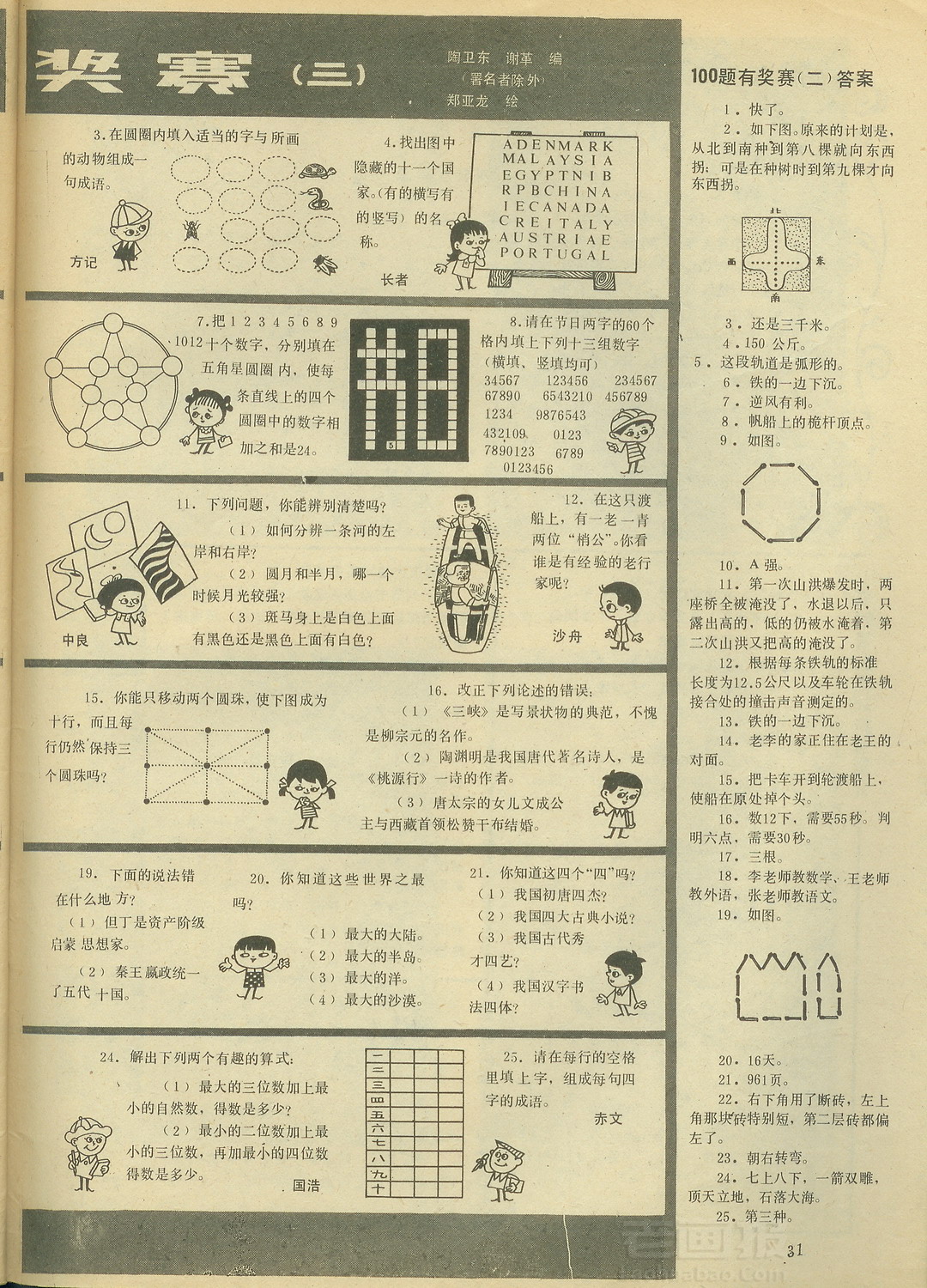 100题有奖赛(三) 第2页 改编:陶卫东,谢革 绘画:郑亚龙 求知画刊 1983年第3期 海阔中文网画报藏书扫描制作 转载请注明出处 1 2 目录 |<< < 上一页 下一页 > >>| 100题有奖赛(三) < 上一页下一页 >