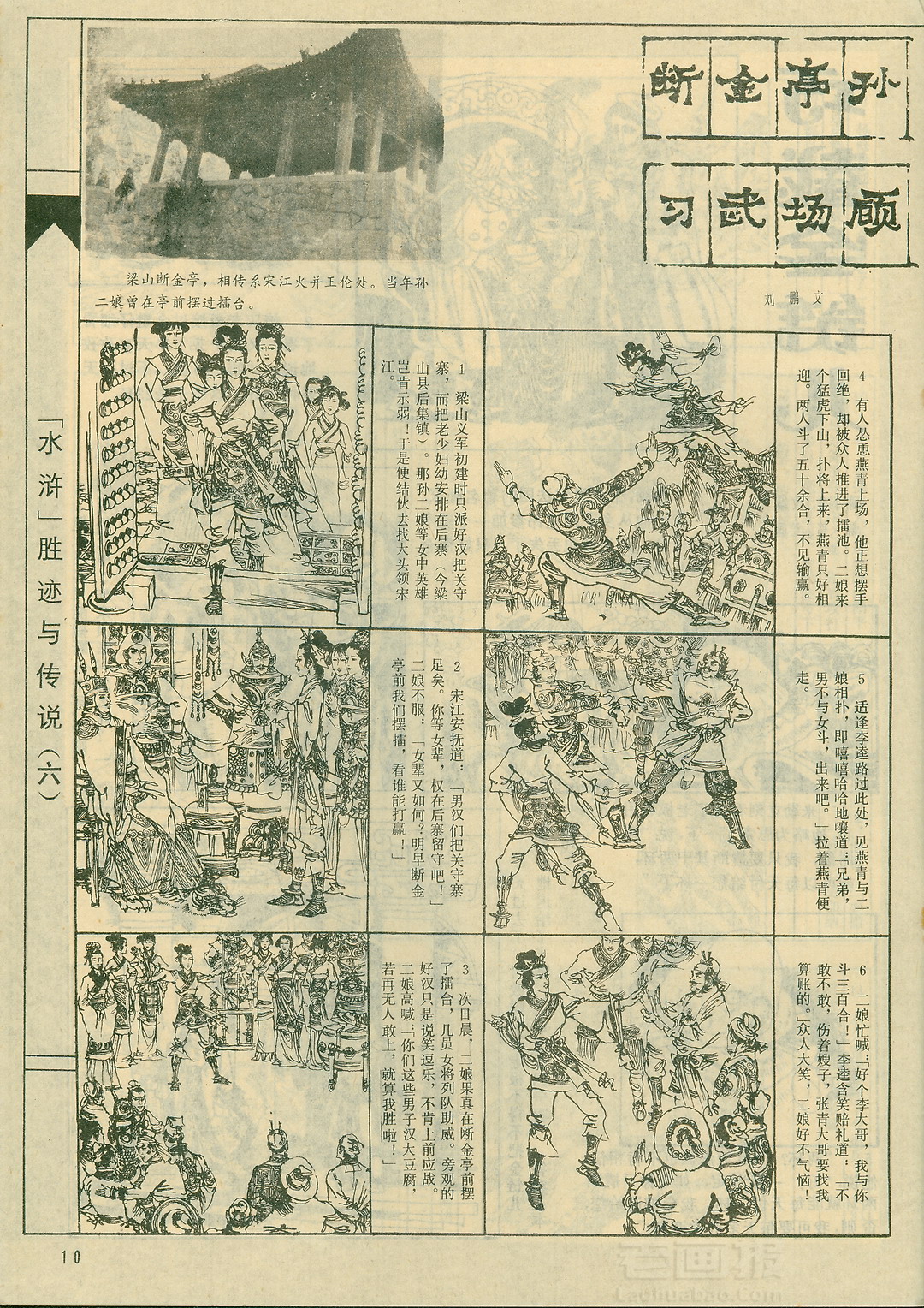 连环画 《断金亭孙二娘摆擂》 水浒胜迹传说(六) 改编:刘鹏 绘画:项维仁 求知画刊 1984年第2期 海阔中文网画报藏书扫描制作 转载请注明出处 1 2 目录 |<< < 上一页 下一页 > >>| 断金亭孙二娘摆擂 水浒胜迹传说(六) < 上一页下一页 >