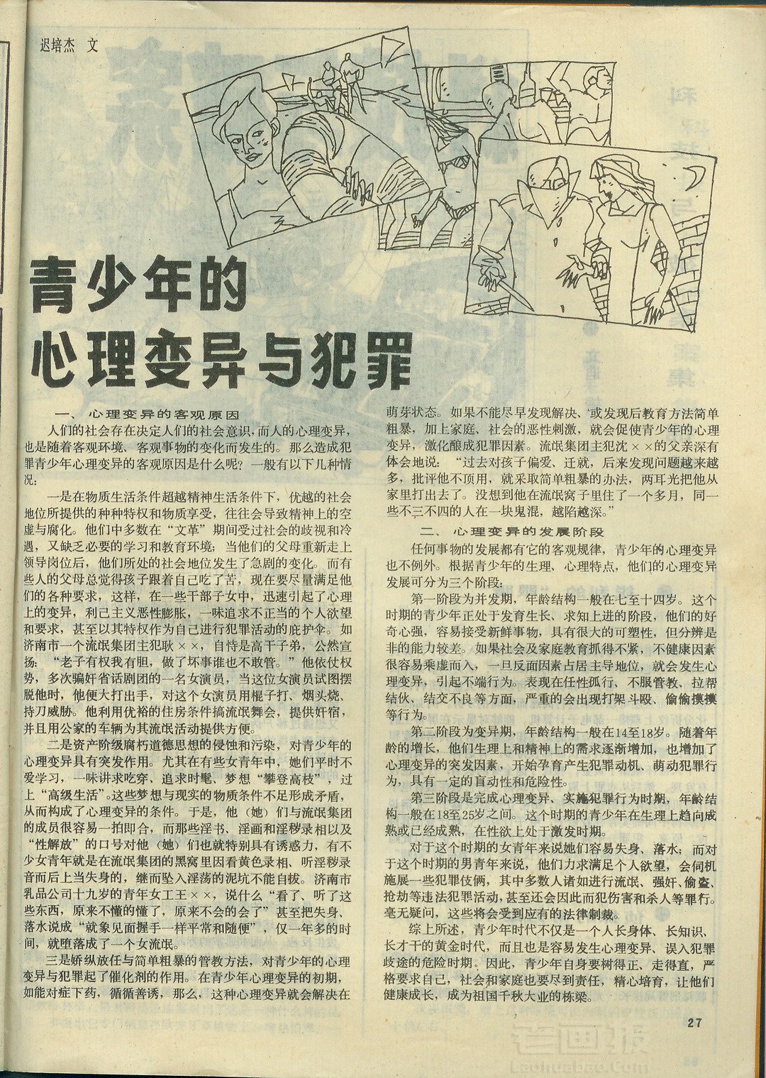 青少年心理变异与犯罪 法制专号 作者:迟培杰 求知画刊 1985年第5期 海阔中文网画报藏书扫描制作 转载请注明出处 目录 |<< < 上一页 下一页 > >>| 青少年心理变异与犯罪 法制专号 < 上一页下一页 >