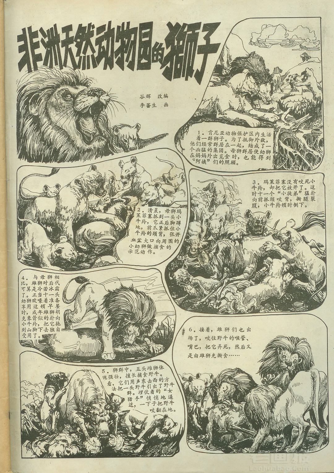 连环画 《非洲天然动物园的狮子》 编文:谷辉 绘画:李蔷生 知识画报 1984年第6期 海阔中文网画报藏书扫描制作 转载请注明出处 1 2 目录 |<< < 上一页 下一页 > >>| 非洲天然动物园的狮子 < 上一页下一页 >